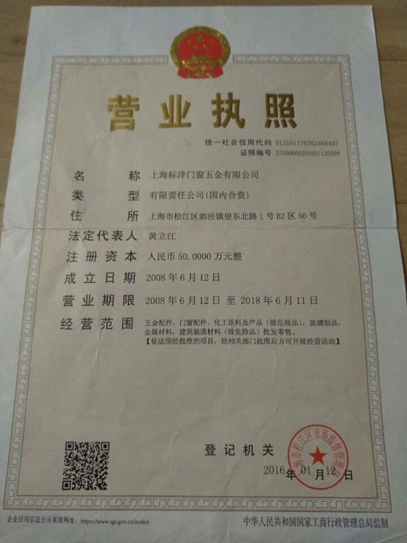 黄立江本人于2008年创办“上海标样门窗五金有限公司”,经过十几年的发展,本公司产品已达到100多个品种、1000多个规格、产品销售覆盖全国各地,